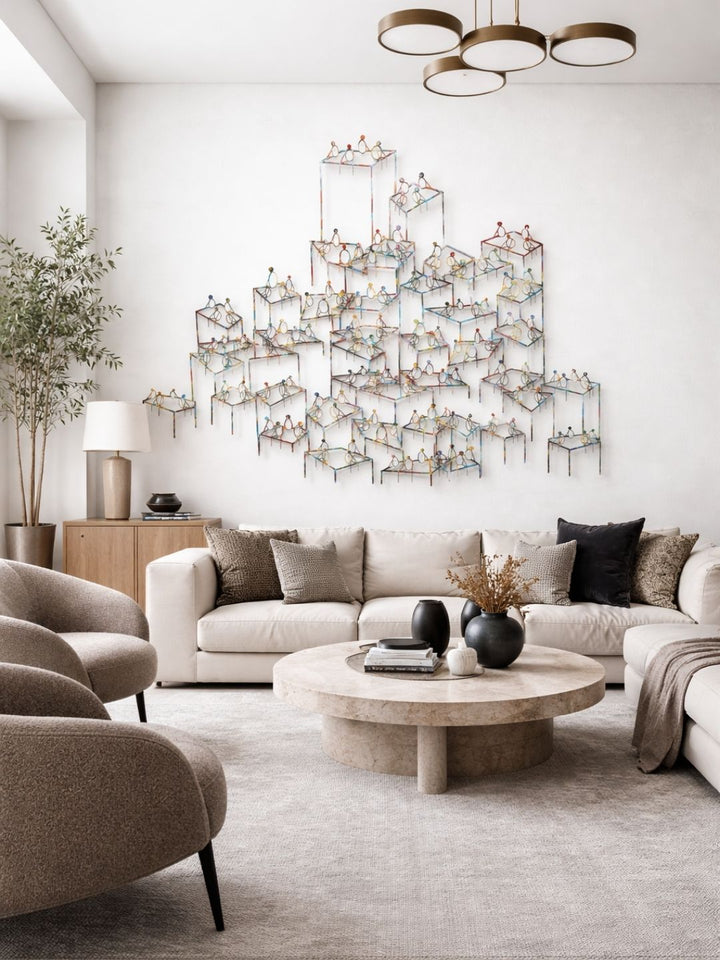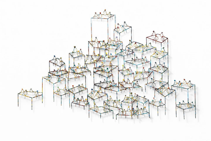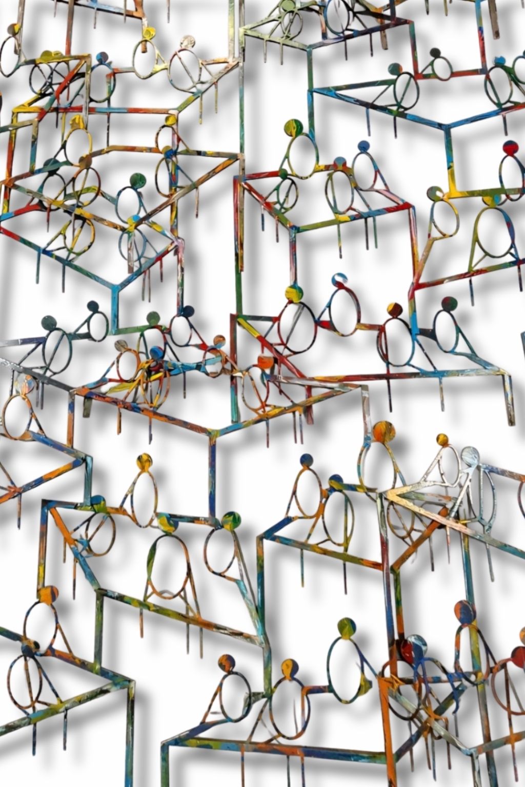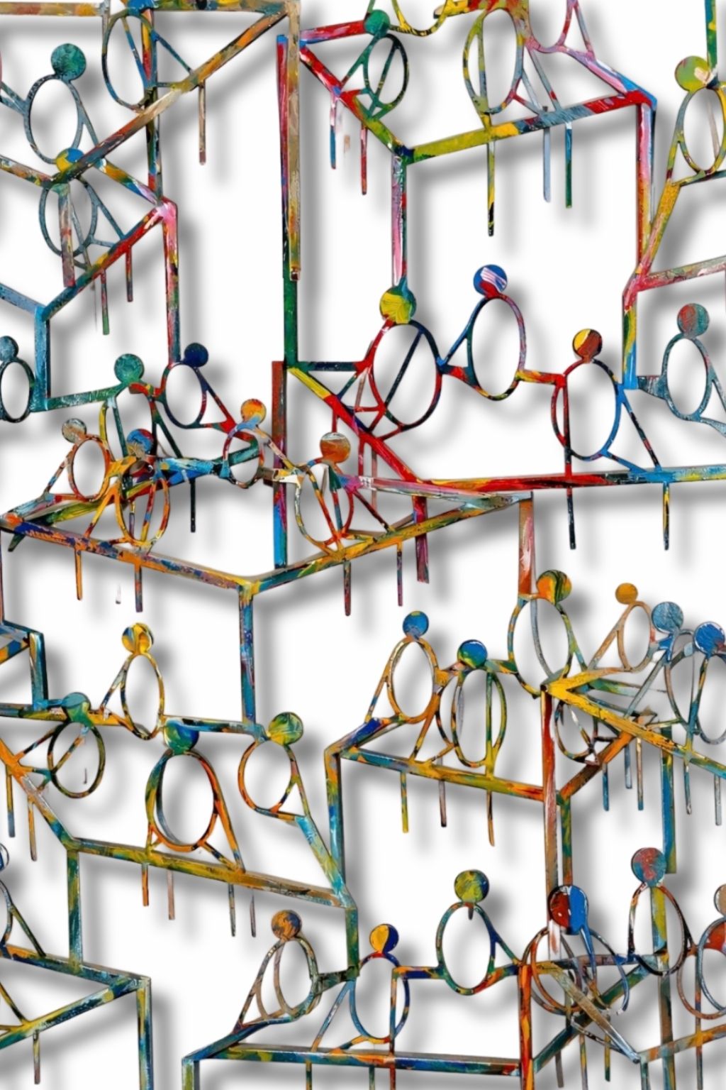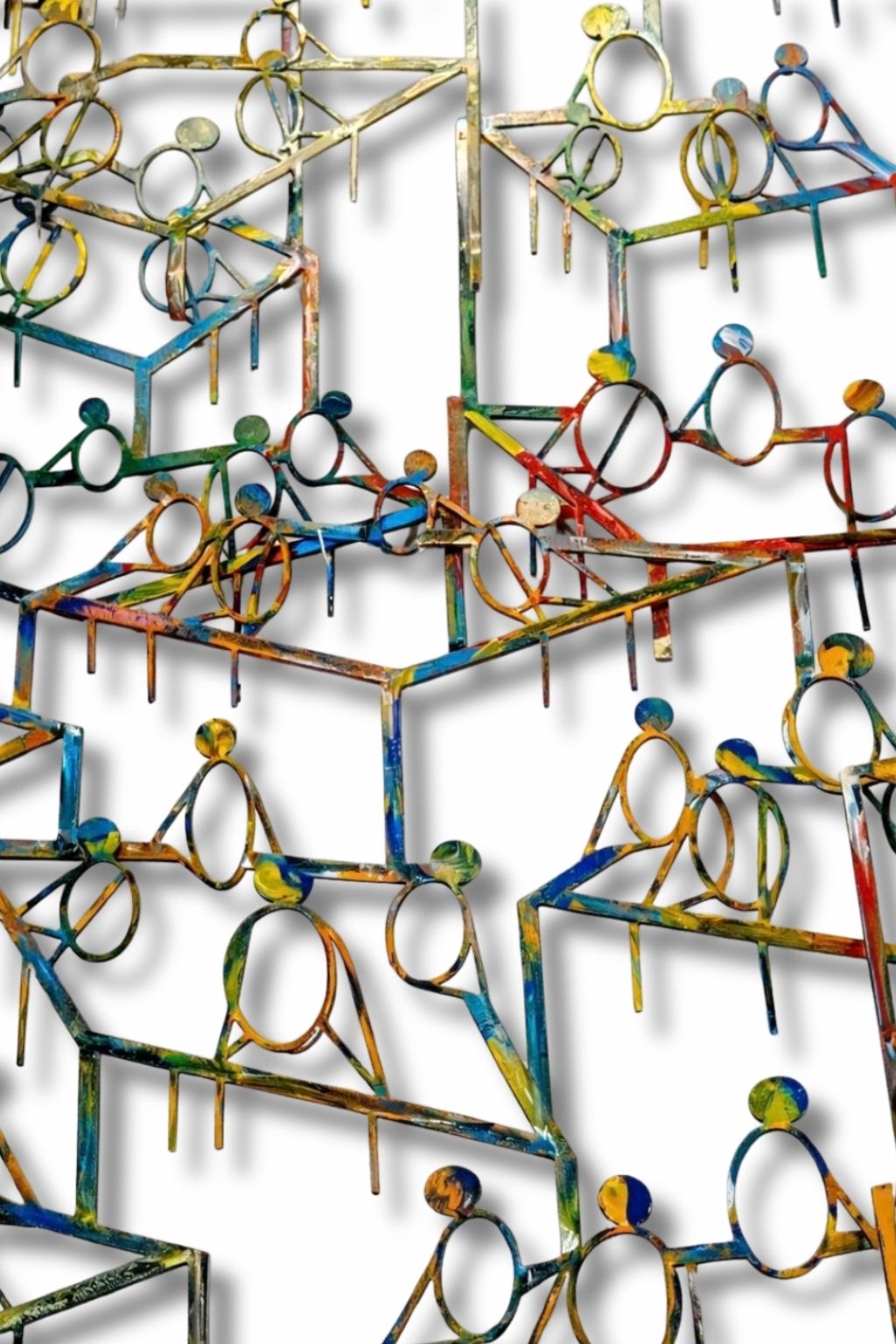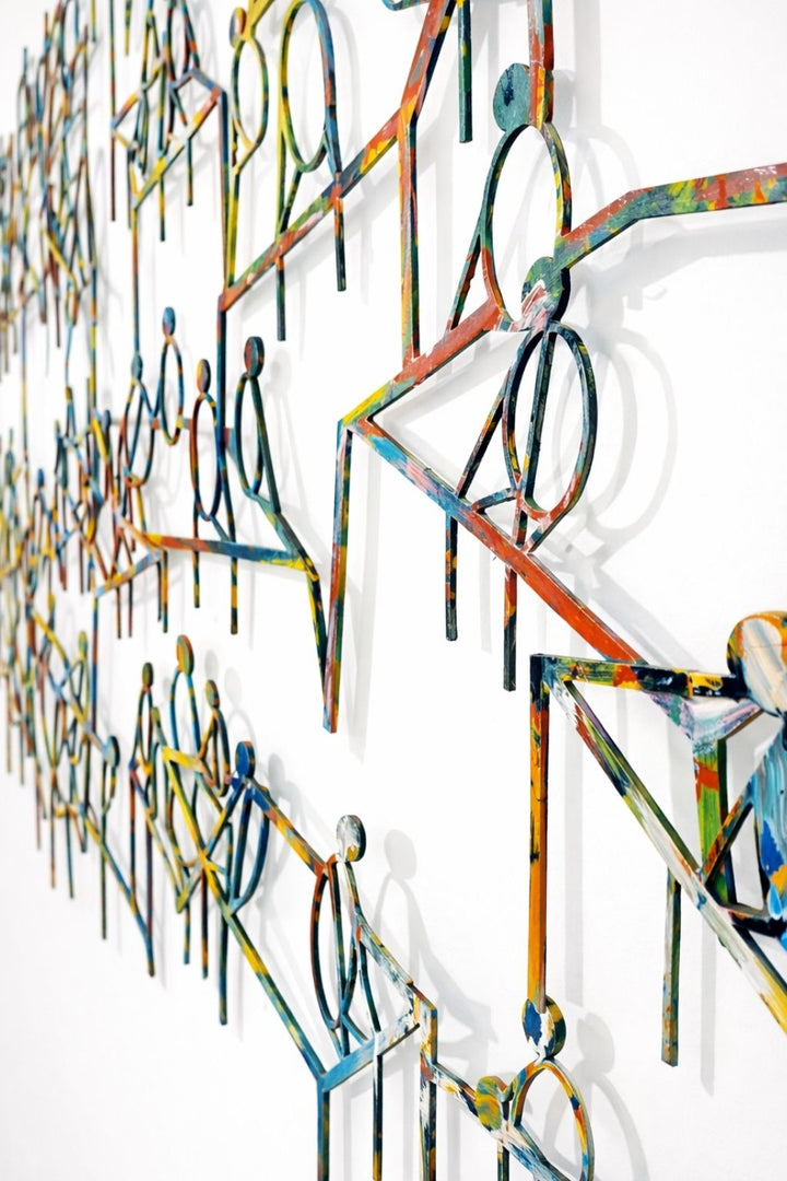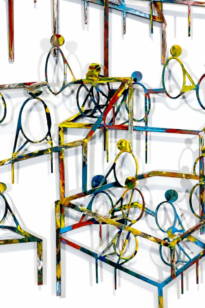Solitud I | Mural est l'expression la plus ambitieuse et architecturale de la série Solitud. L'œuvre se présente comme une silhouette urbaine modulaire composée de six pièces d'acier indépendantes de 3 mm, qui peuvent être réagencées pour adapter la forme de la fresque à l'espace.